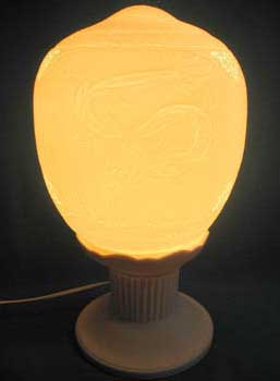 洁白温润的象牙材料作为灯罩,在其上雕刻出中国古典文化里的美丽场景,结合灯光,打造出接近黄昏时分的最自